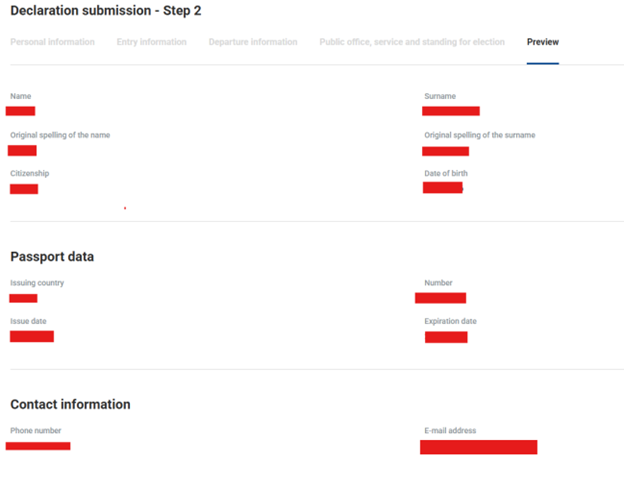 - After submission, you will receive a confirmation email stating that the declaration has been completed. Within 48 hours, you will receive an additional email confirming the registration of the declaration, along with a unique declaration number. Please note that if false information is provided, a financial penalty may be imposed during the verification process.
